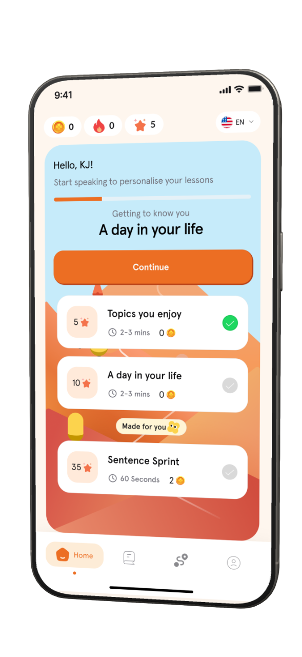 No tests, no grades. Just easy, back-and-forth conversations, with lots of feedback. Think learning with someone who's rooting for you, not correcting you.